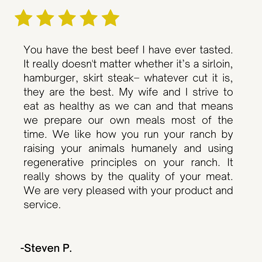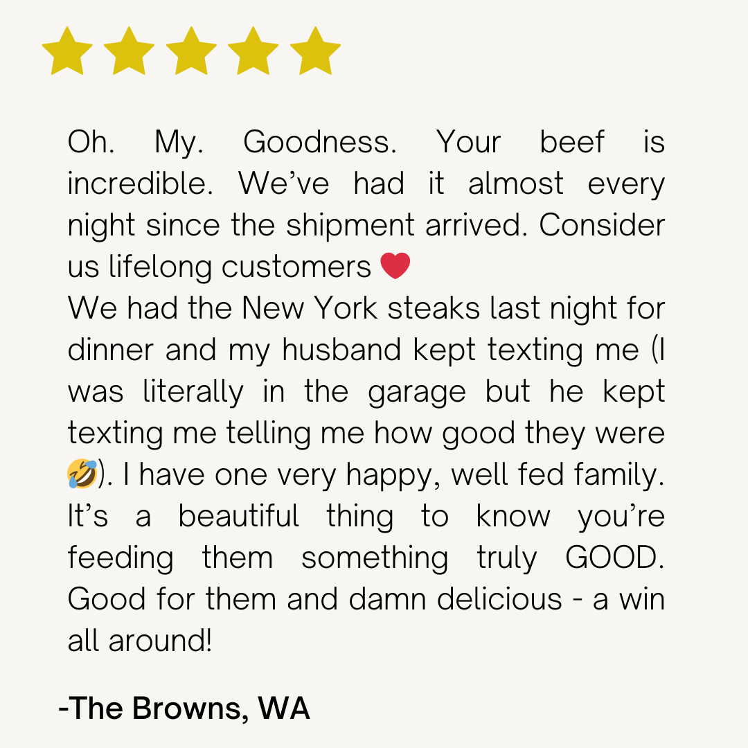 We've been raising beef this way since 2006 and you WILL notice the difference. Your family will delight in the flavor and you will have peace of mind knowing where your food came from.
