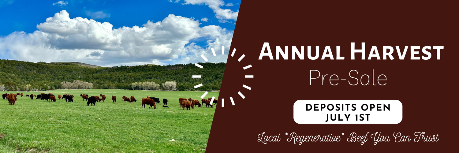 We start by using alpine snow melt from Silver Jack Reservoir to irrigate our Certified Organic grass/alfalfa pastures. We rotationally-graze our cows through these fields and they, in turn, feed organic matter back into the soil through their manure. It’s a beautiful, symbiotic process that fuels the nitrogen cycle of the soil (evidenced by all of our red clover!) and produces the best grass-fed beef.