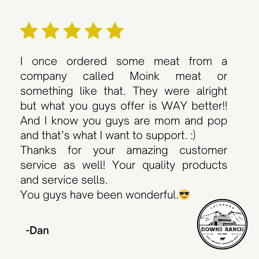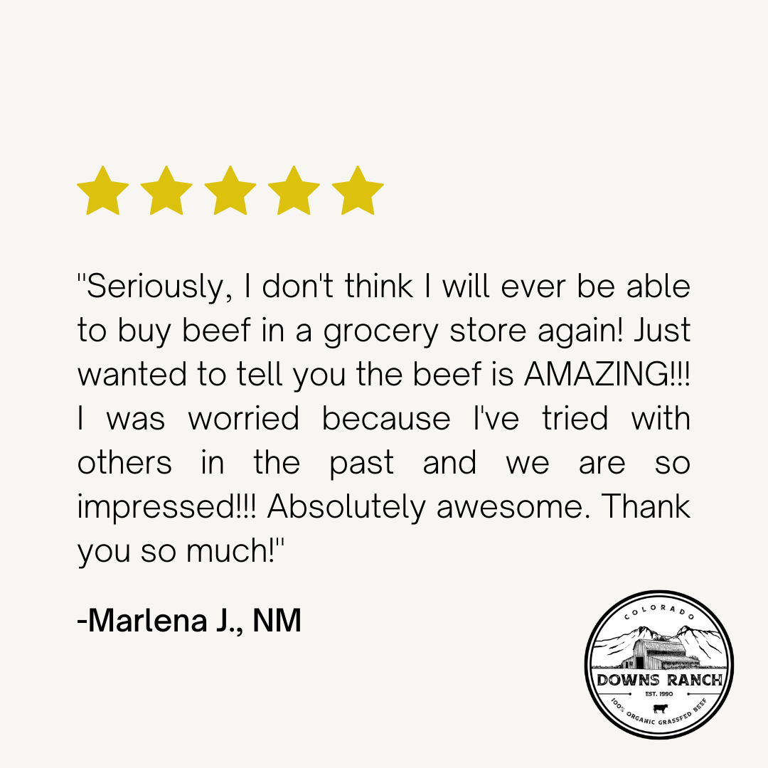 Indulge in the exceptional taste and nutritional benefits of Downs Ranch 100% Organic Grassfed Beef.